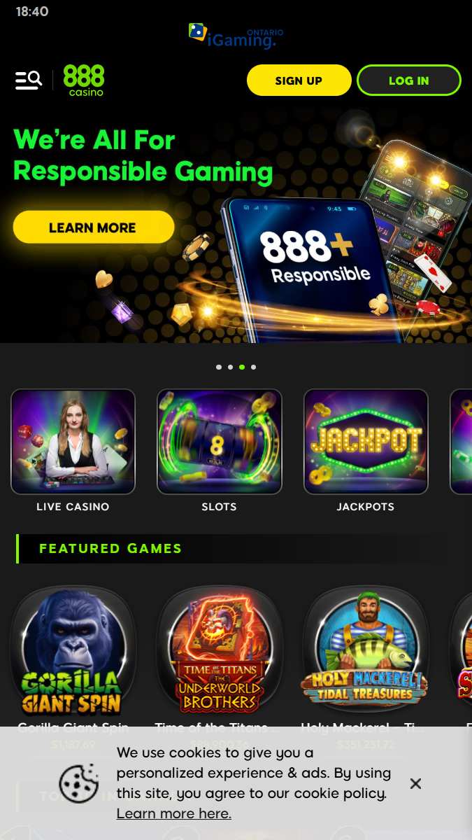 Players in Ontario can download the 888Casino mobile app. Available for both iOS and Android operating systems, you can install the app from the relevant app store.