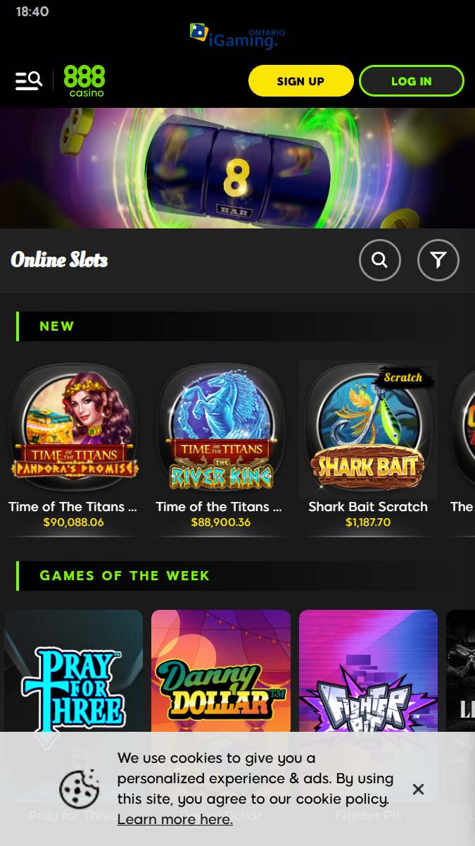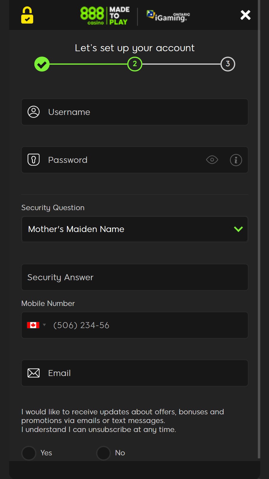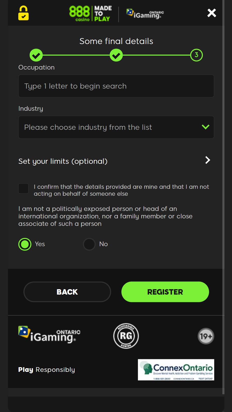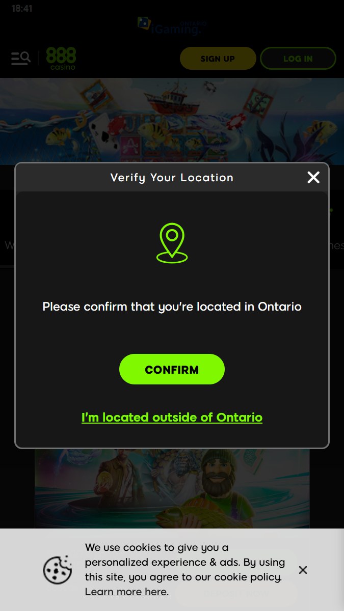 Secondly, make sure you’re in the province of Ontario when you register and play at 888Casino. The site uses a Geolocation tracker to ensure you’re legally allowed to play.