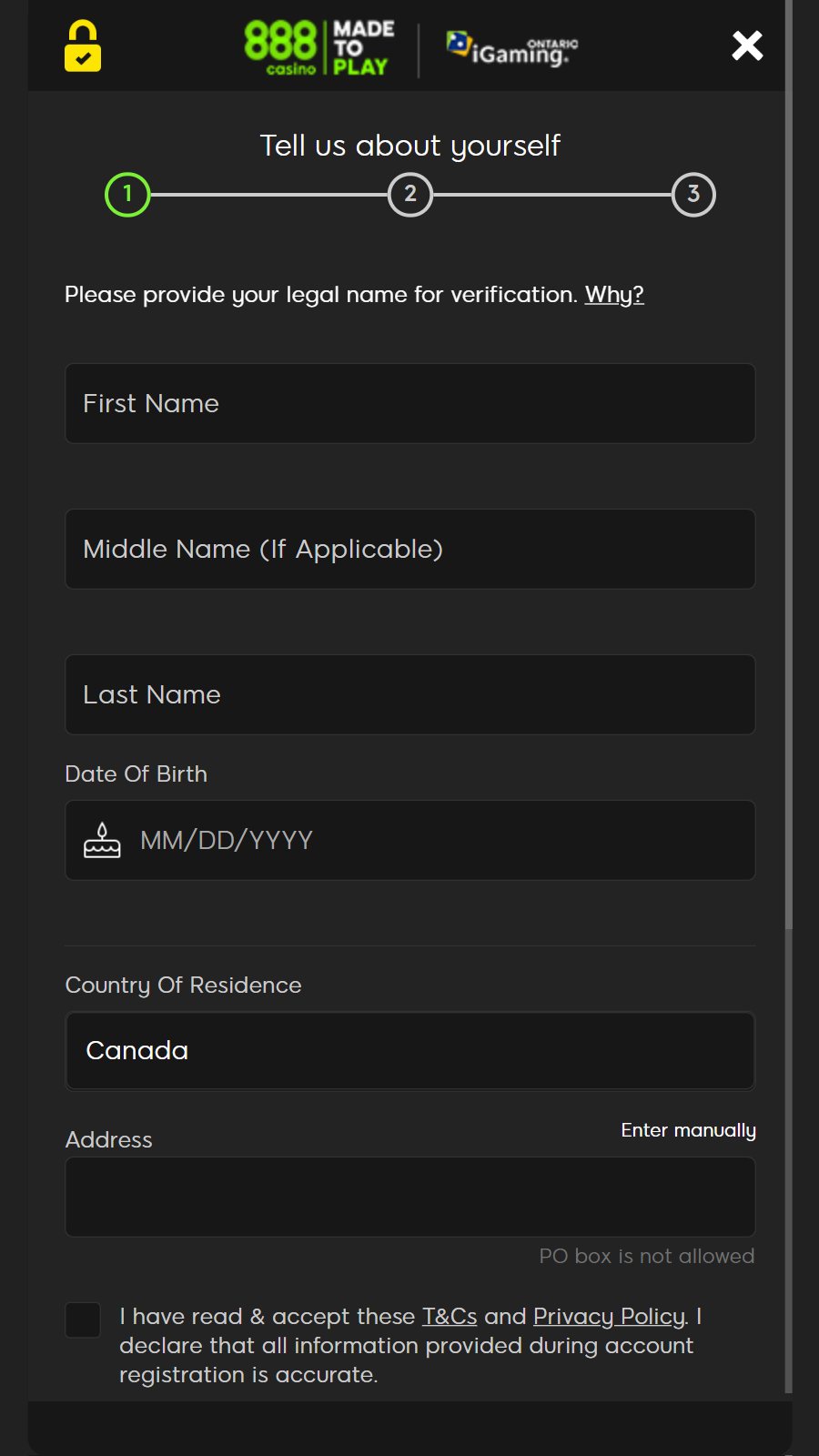 Firstly, make sure that all the information you enter in the registration form is accurate. As per the regulatory guidelines in Ontario, betting sites must be able to verify the identity of their players. Once you’ve completed the signup form, you’ll be invited to verify your account. You won’t be able to play for real money until your account is fully verified.