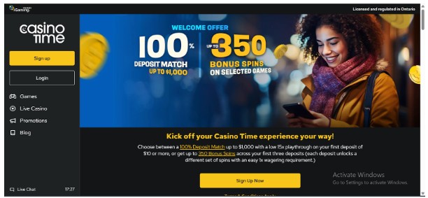 During our research, we found that Casino Time does not operate in any other regions other than the Ontario market. Here’s an overview of the casino.