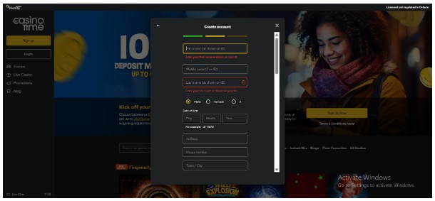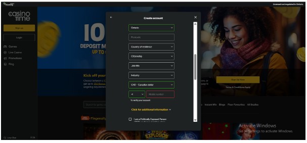 The registration process at CasinoTime took us about 5 minutes to complete. Here’s what you should do during the registration: