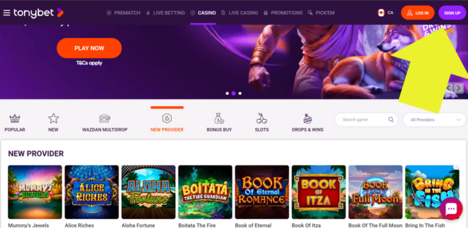 We also liked how the “Search” button and the providers filter are displayed easily in the middle section. These buttons, especially the “All Providers” button, got us faster in checking all the Pragmatic Play slots at TonyBet Ontario Casino in just a few seconds.